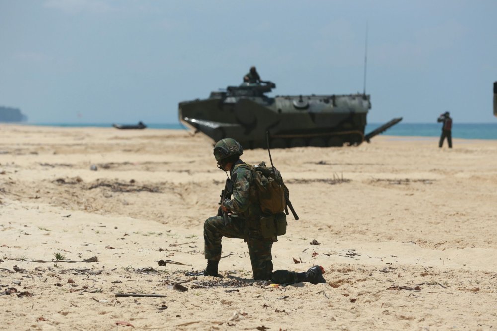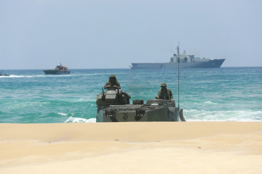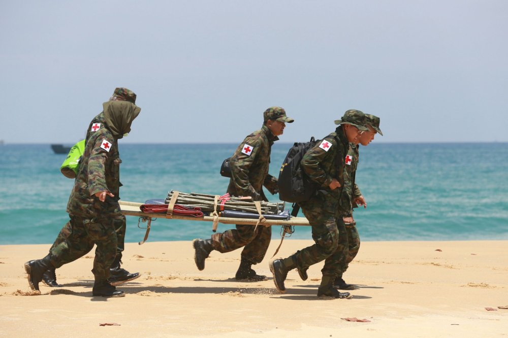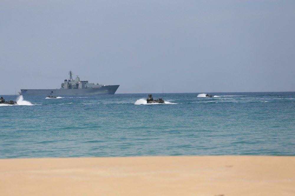เริ่มด้วยการฝึกยิงอาวุธทางยุทธวิธี ของหน่วยบัญชาการต่อสู้อากาศยานและรักษาฝั่ง(สอ.รฝ.)โดยหน่วยยิงกองพันต่อสู้อากาศยานที่ 22 ได้ทำการฝึกยิงเป้าอากาศยาน หน่วยยิงกองพันรักษาฝั่งที่ 11 ฝึกยิงเป้าพื้นน้ำ และหน่วยยิงกองพันต่อสู้อากาศยานที่ 22 และ กองพันปืนใหญ่ต่อสู้อากาศยาน กองพลนาวิกโยธิน ได้ทำการยิงอาวุธปล่อยประทับบ่าแบบ QW – 18 ตามลำดับ จากนั้น กองเรือทุ่นระเบิด กองเรือยุทธการ ฝึกการวางและทดสอบกลไกการทำงานโดยอัตโนมัติของทุ่นระเบิดทอดประจำที่ปราบเรือดำน้ำแบบล่องหน(Mi9) จำนวน 2 ลูก และเข้าสู่การฝึกปฏิบัติการยุทธ์สะเทินน้ำสะเทินบก พร้อมส่งกำลังรบยกพลขึ้นบกขึ้นสู่ฝั่งเพื่อคลี่คลาย สถานการณ์ความขัดแย้งบนบกตามลำดับ ตามแนวคิดจากทะเลสู่ฝั่ง (From The Sea)
