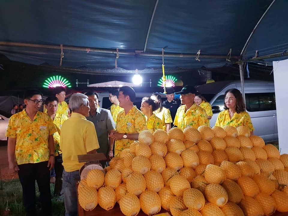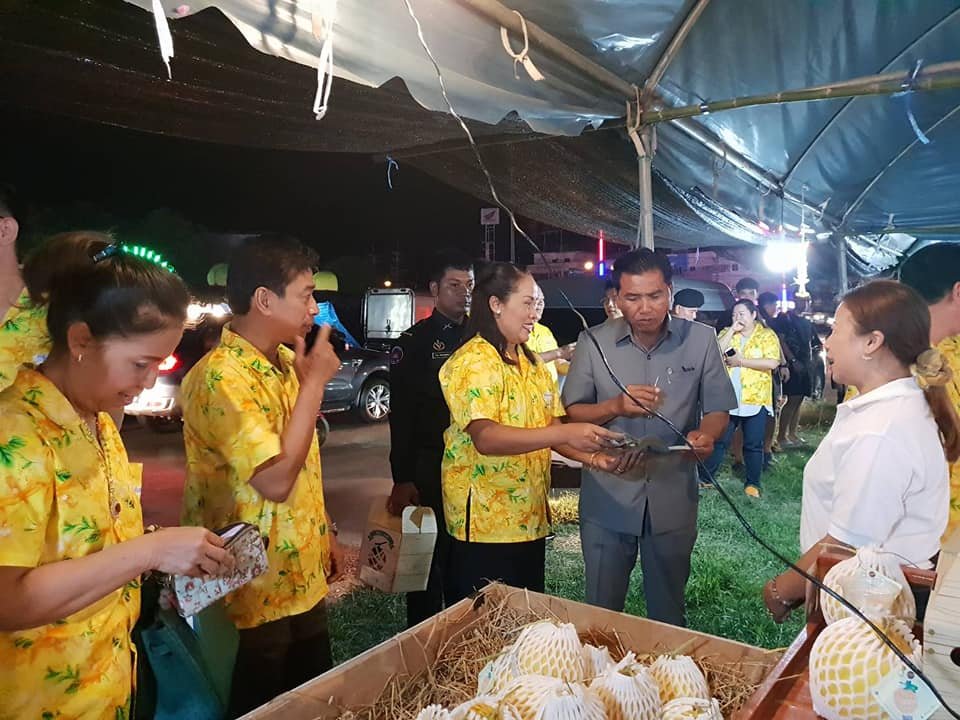 จากนั้นนำคณะเยี่ยมชมแผงจำหน่วยในงานแคนตาลูป เพื่อขวัญกำลังใจให้เกษตรกรที่นำผลผลิตมาจำหน่วยเพื่อสร้างรายได้เข้าสู่ครอบครัวอย่างมั่นคงต่อไปสมศักดิ์/สระแก้ว