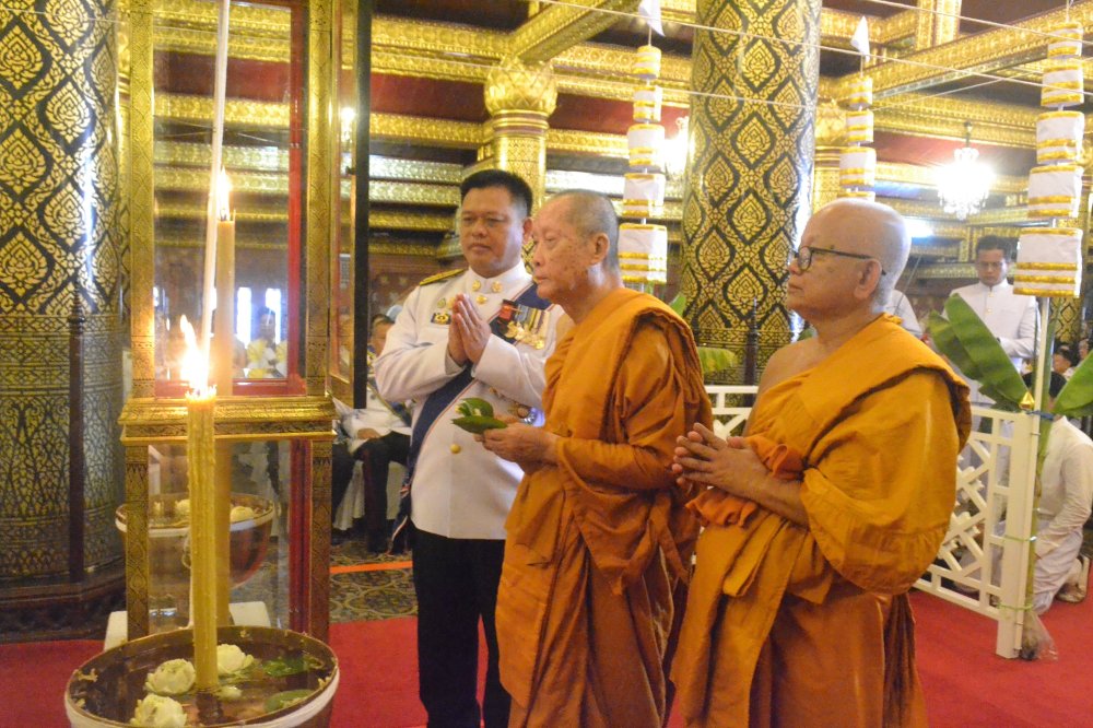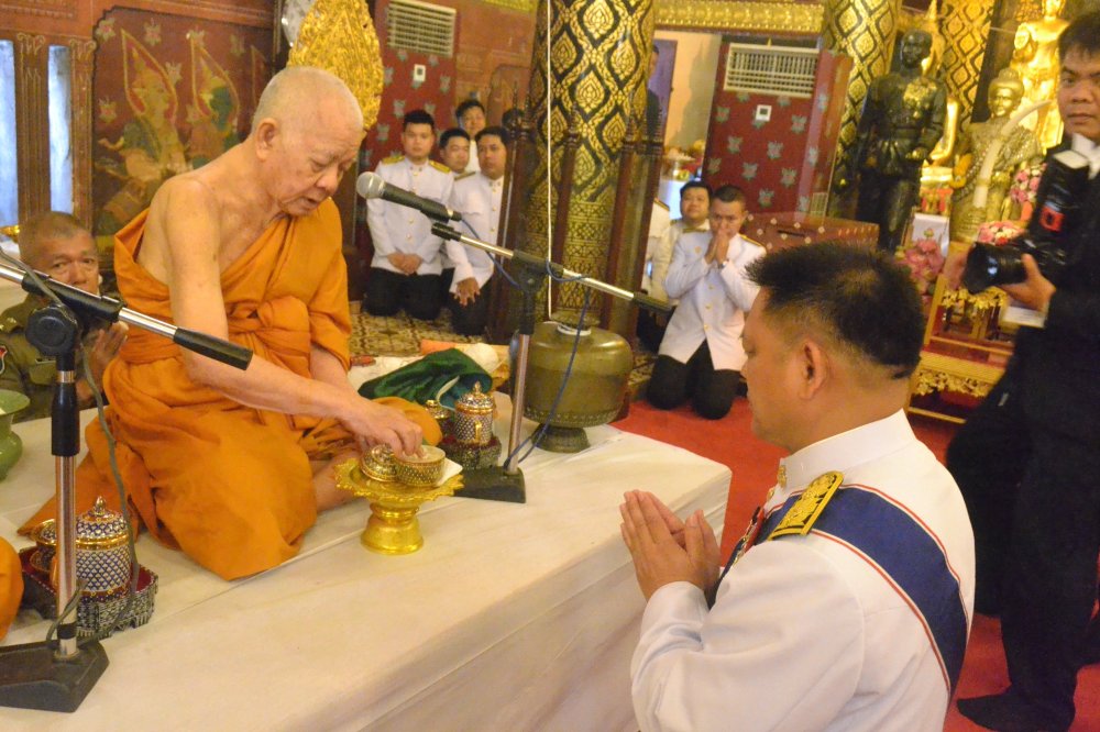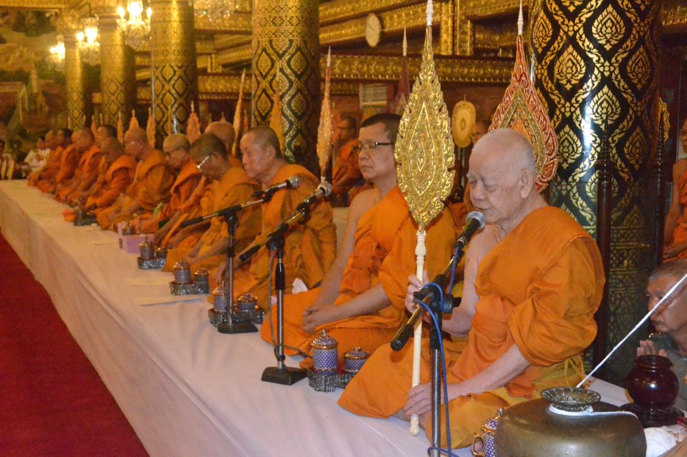 หลังจากเวลา 10.00 น. น. พระเถราจารย์ประธานสงฆ์ ดับเทียนชัย พระสงฆ์ 30 รูป เจริญพระพุทธมนต์คาถาดับเทียนชัย เจ้าหน้าที่ประโคมฆ้องชัย ดุริยางค์บรรเลงเพลงมหาฤกษ์ ประธานสงฆ์พรมน้ำพระพุทธมนต์ที่ขันน้ำสาคร ก่อนที่จะมอบให้ผู้ว่าราชการจังหวัดพิษณุโลก นำกล่าวคาถาตักน้ำ จากนั้น เจ้าหน้าที่ส่งที่ตักน้ำให้ประธาน เพื่อตักน้ำอภิเษกจากขันน้ำสาคร ใส่คนโท พร้อมซีนฝาคนโทให้สนิท หลังจากนั้นประธานในพิธีและข้าราชการประเคนภัตตาหารแด่พระสงฆ์ 30 รูป ประธานฝ่ายสงฆ์อนุโมทนา ประธานพิธี กรวดน้ำรับพร
